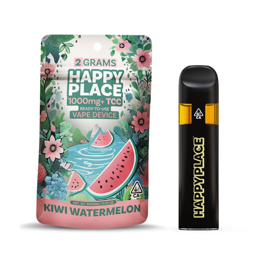 Find Your Happy Place Happy Place is California's first 2-gram All-In-One vape, delivering more puffs, the highest potency, and the most oil available – all at an unbeatable price per gram. Our high-quality oil is crafted with premium HTE Diamond Sauce, rich in THC, minor cannabinoids, cannabis terpenes, flavonoids, and natural terpenes for an exotic flavor profile you won’t find anywhere else. No distillate – just pure, powerful effects that elevate your experience. Taste the difference, feel the quality, and find your happy place with every hit.