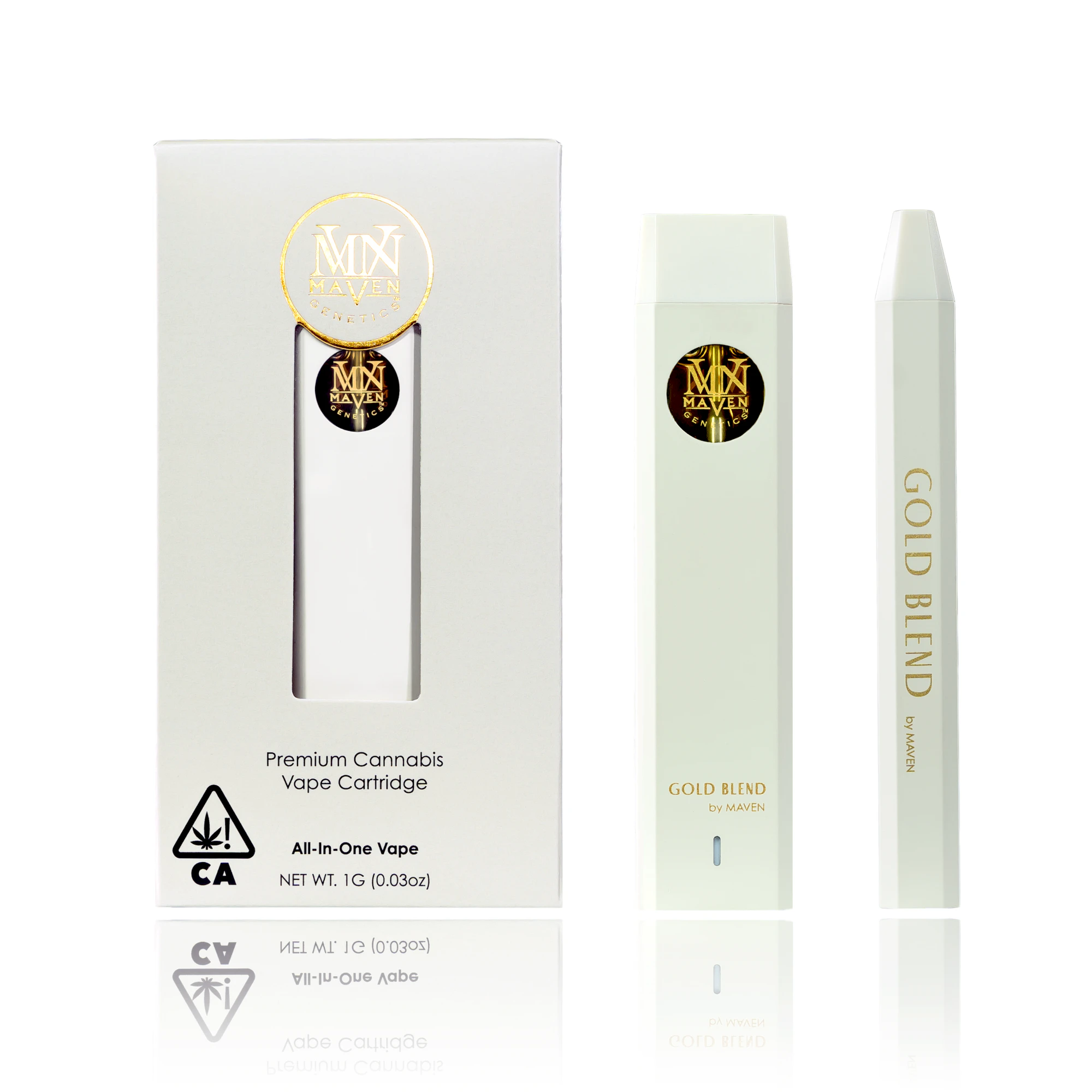 Prizm Gold Blend is a brilliant pure Indica-dominant cross of our Opal and Permanent Marker #12 strains. An initial clean, astringent, almost chemical-like scent gives way to more pleasant notes of pine needles and citrus candy. A lovely floral medley dances on the tastebuds, leading to a sharp, lemon-diesel exhale that dazzles the senses. This spectrum of vivid flavors mirrors its sedative qualities and transforms stress, revealing the hidden beauty present in everyday life. Maven All-in-One Vaporizers are 100% cannabis-derived and strain-specific, sourced from Maven’s premium indoor flower. Blended in curated ratios with our ultra-refined, potent cannabis oil and cannabis-derived terpenes, our award-winning Gold Blends create an exceptional entourage effect, amplifying the best qualities of Maven’s signature strains. The sleek and streamlined design ensures a sophisticated and convenient vaping experience of all your favorite Maven strains.