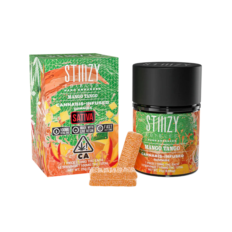 Introducing our new line of STIIIZY edibles. Your favorite live resin infused gummies are formulated with fast-acting nanotechnology in 10 mg pieces. Enjoy the blend of both delicious and mouth watering flavors in every bite.